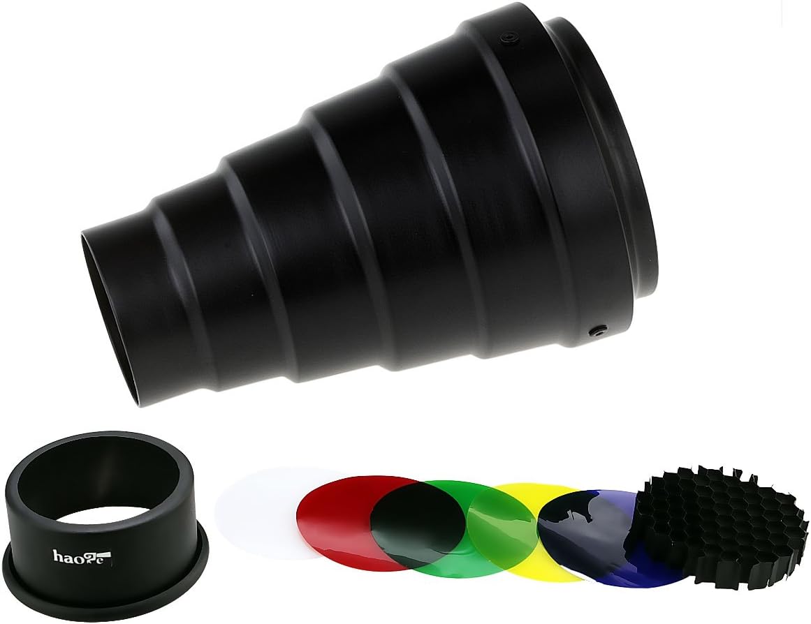 Haoge Metal Conical Snoot with Honeycomb Grid and Color Gel Filter Kit